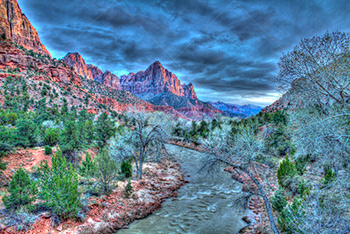 Parc de Zion HDR la rivière North Fork Virgin, montagnes et ciel | Stock photo